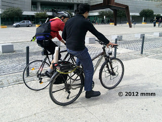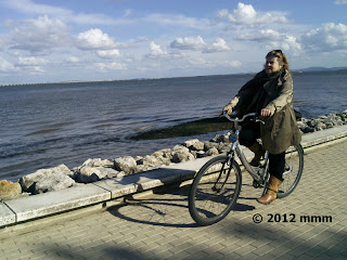Continuando com as senhoras primeiro e agora noutra realidade urbana, também encontrei esta senhora a pedalar o seu triciclo junto ao rio Tejo ali no Parque das Nações Norte. É ideal para passear, ou para ir até ao centro comercial fazer umas compras. Não saber andar de bicicleta ou já não ter a destreza da juventude não é, como se vê, motivo para não adoptar uma "cena a pedais" como meio de transporte económico, ecológico e eficiente.